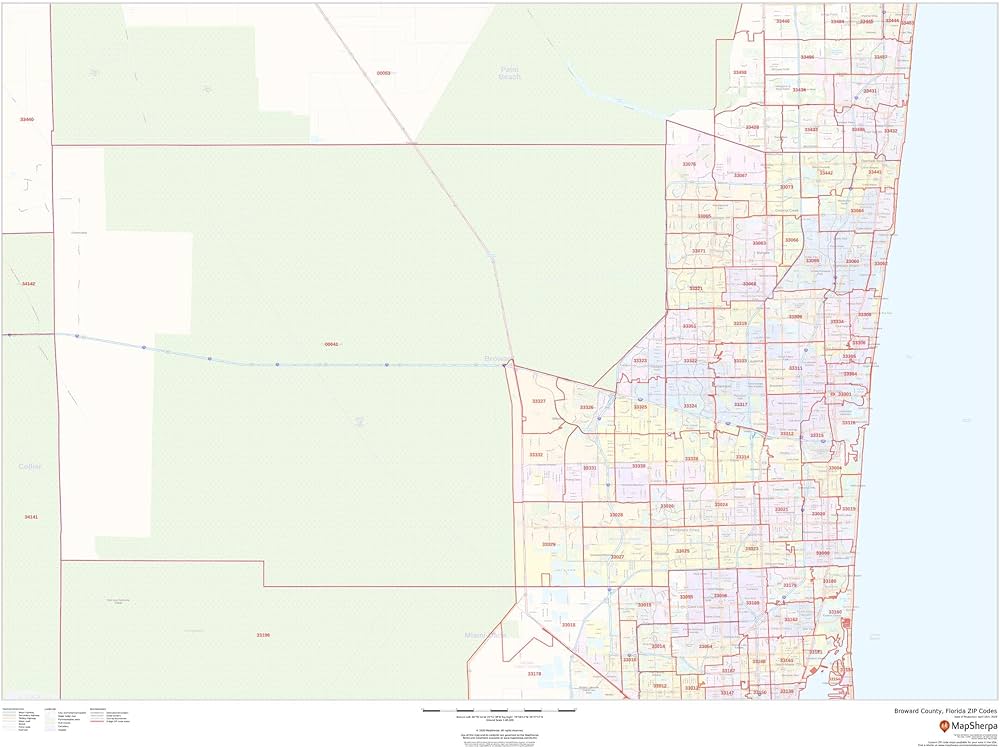 Amazon.: Broward County, Florida ZIP Codes 48″ x 36″ Rolled